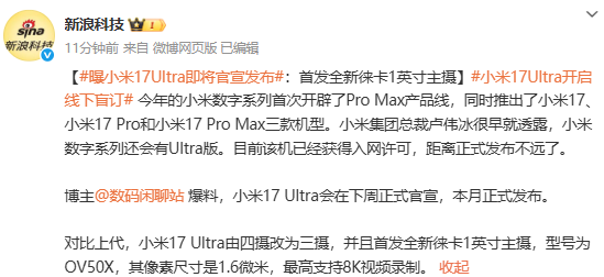 你的位置: 600永不输本金的注码技巧 > 新闻动态 >曝小米17 Ultra新机将于下周官宣 12月内正式发布